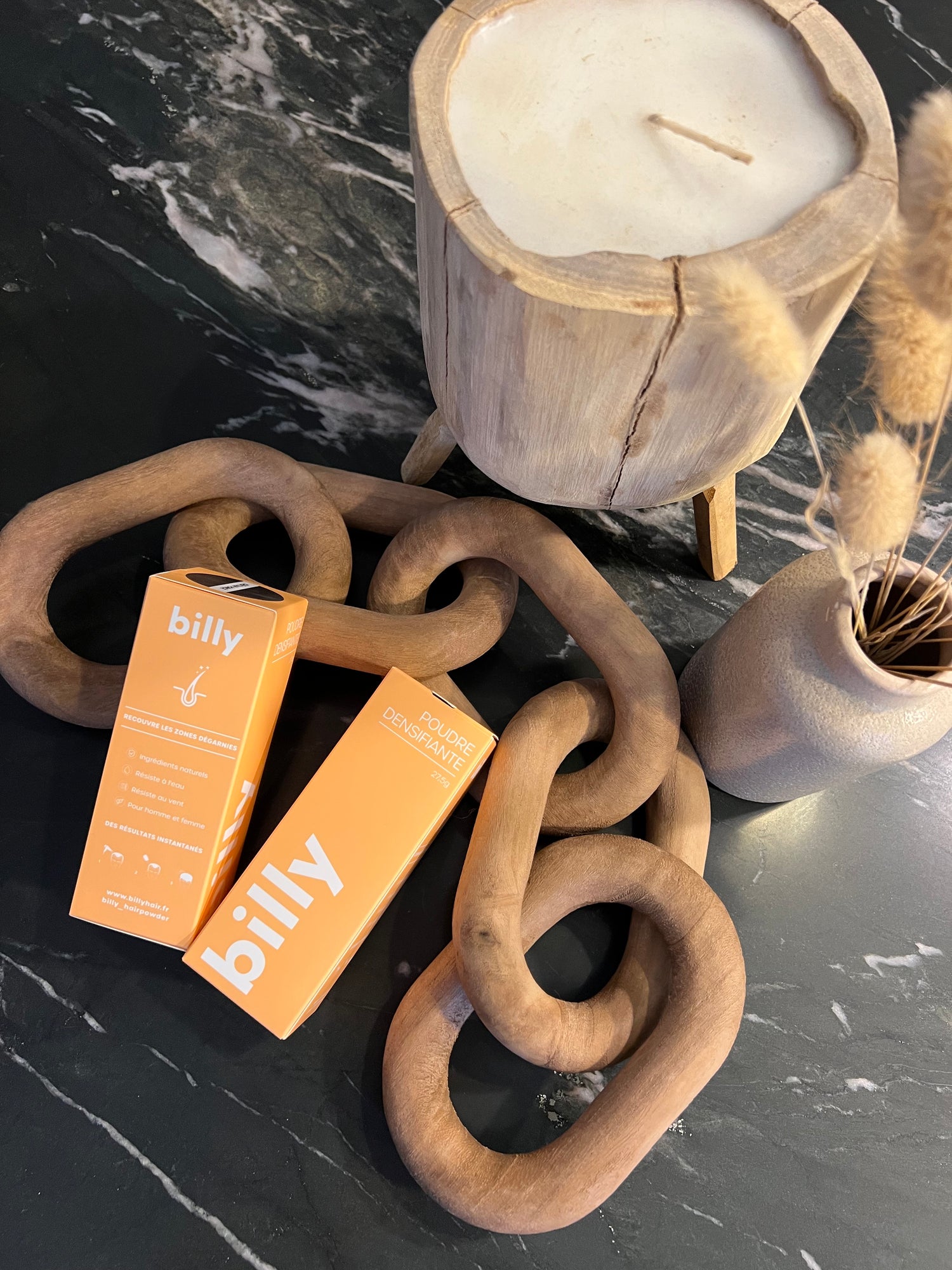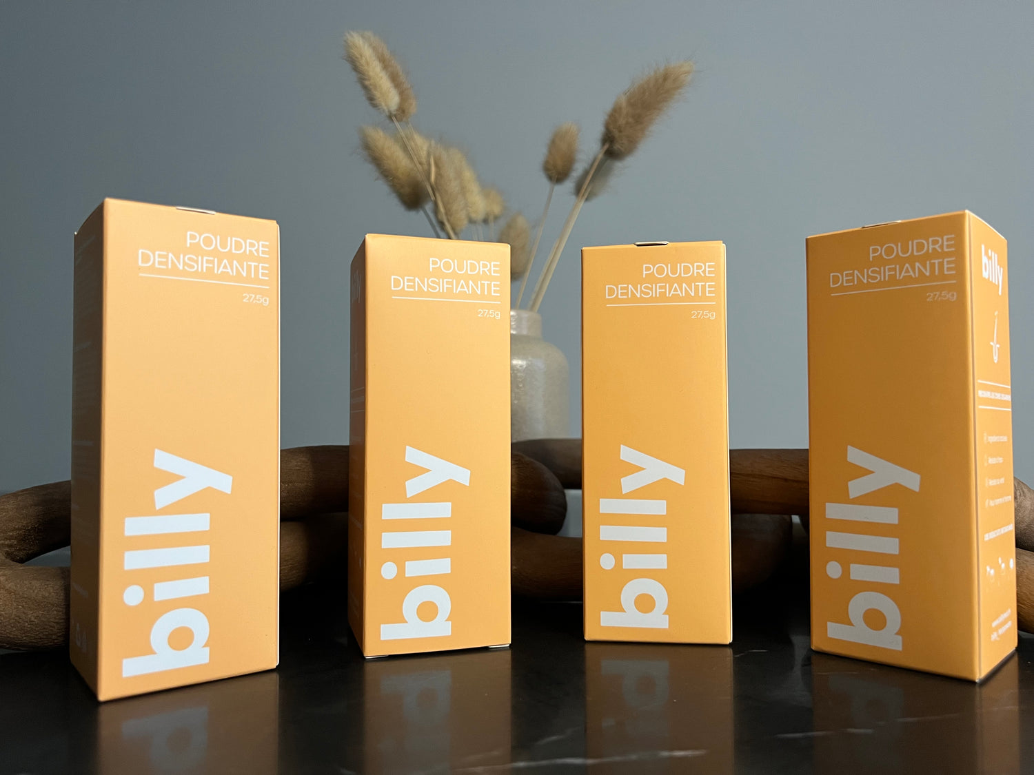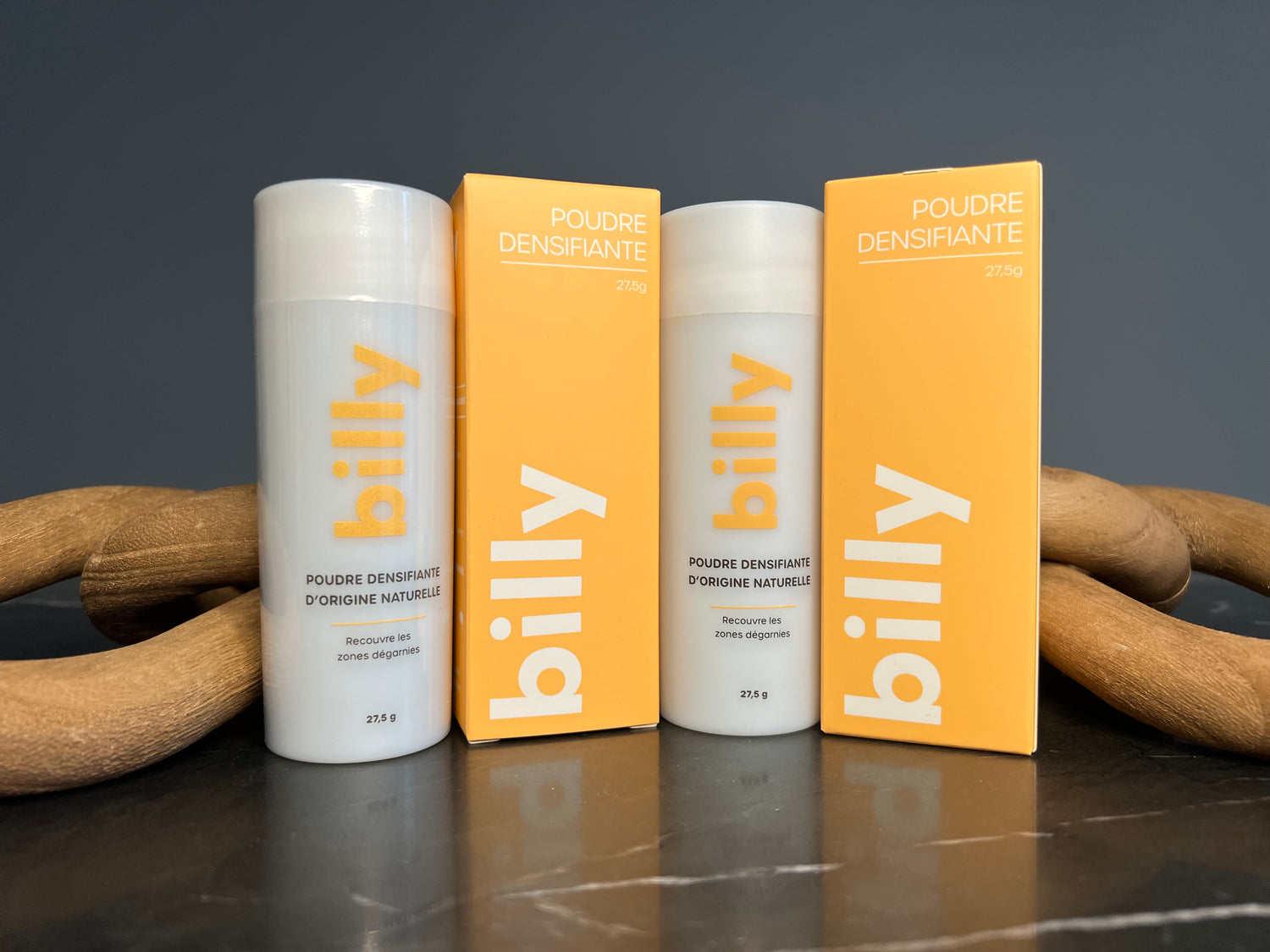 Ainsi est née Billy, une poudre densifiante, conçue pour masquer instantanément les zones clairsemées et redonner confiance à ceux qui, comme eux, font face à la calvitie. Billy n'est pas seulement un produit, c'est une solution créée par deux personnes qui comprennent parfaitement les défis de la perte de cheveux.